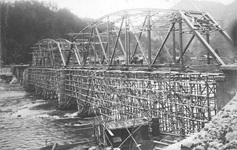 池原橋は、昭和4(1929)年に北山川に架けられた。それまでは渡船で往来しており、運行は天候に左右されて不安定であったし、筏で行っていた木材搬送との干渉もあった。7月29日に渡橋式が行われ、村民は架橋を大いに喜んだという。